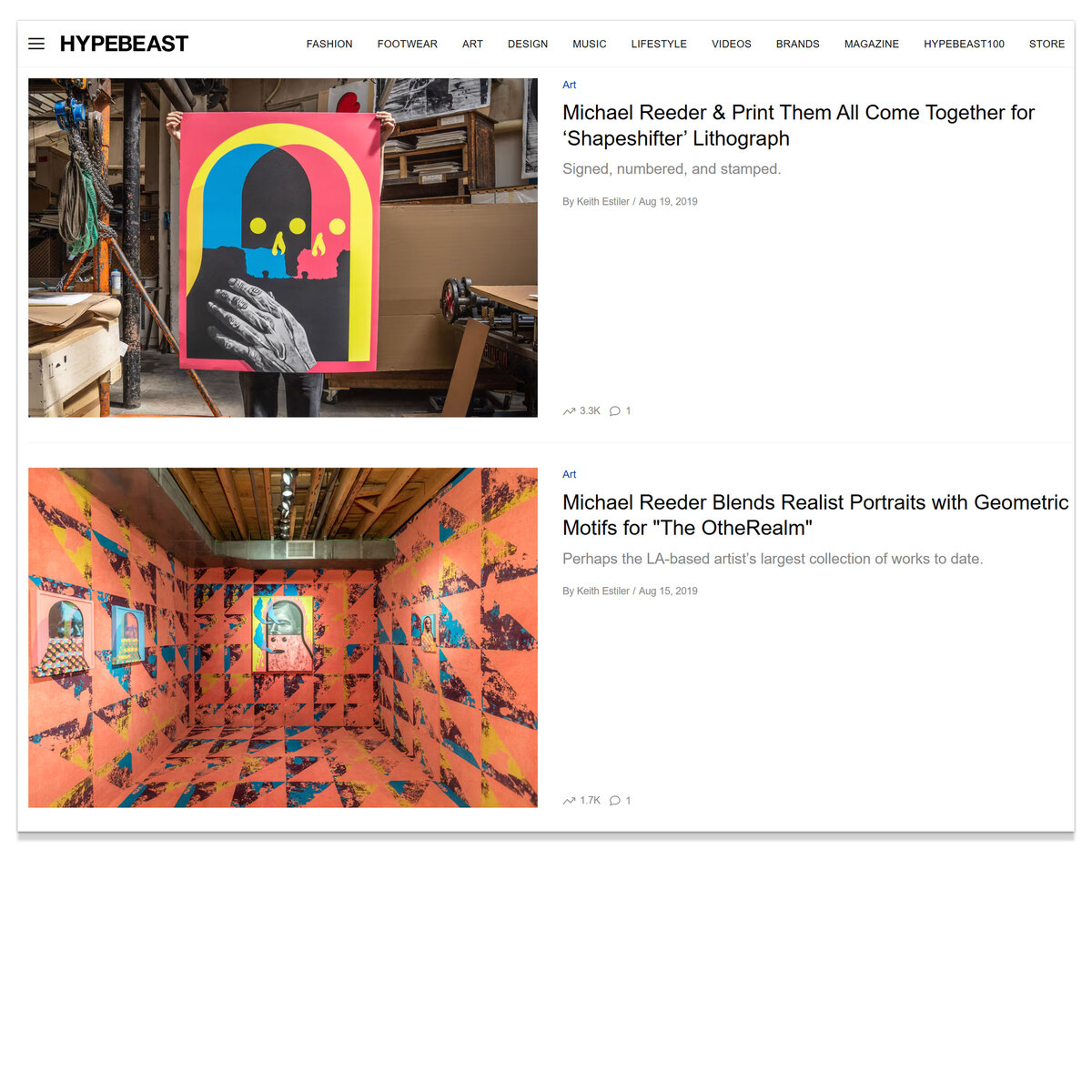 As he prepared for his largest solo show to date, visual artist Michael Reeder (reederone) set out to create an experience that would stay with his audience. His idea began with the floor—treating it as a canvas and contrasting the hardness of wood and concrete with the otherworldly softness of heavyweight Milliken carpet tile. The concept soon expanded to the walls, transforming the gallery at Thinkspace Projects into more than just a striking visual statement. The space itself shifted: echoes softened, the atmosphere thickened, and the gallery became a cocoon where viewers could engage with his work on a more intimate level.